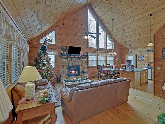 Price Improvement! Picture perfect log cabin with 7 acres of Toccoa River access! Walk inside this gorgeous, well-built cabin, and you will know you are home. Fully furnished home situated on 1.53 acres feels worlds away from the hustle & bustle of life. Soaring wood ceilings & pine interior, stone gas-burning fireplace. Spacious kitchen with beautiful wood cabinetry & plenty of room for a large dining table. Walk through the kitchen out onto the large porch and enjoy your morning coffee listening to the sounds of the noisy river & nature humming. 1 bed/1bath & a home office on the main level & a stunning master bedroom and bath upstairs. The terrace level features 1 bed/1bath & extra living area or a future game/rec room. 2 car garage with an additional unfinished room above. Gated entrance to ensure privacy & paved roads all the way to the home for easy access. Only a short scenic drive to amazing hiking trails & into Blairsville or Blue Ridge for dining & shopping. Come enjoy all the mountains have to offer!