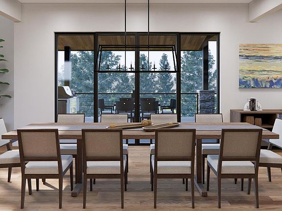 This exquisitely crafted 5 bedroom, 5.5 bath, 6,318 sq ft Iron Horse estate is almost ethereal, set on a peaceful, park-like location, routinely visited by local wildlife; it features mature cedars, a year round burbling stream and partial views of Whitefish Lake. Many modern Scandinavian elements are woven throughout the home, with the use of high textured materials, color, and the natural surroundings. Chic recessed lighting is complemented throughout the home by brilliant natural light that pours into expansive living spaces through custom Pella Contemporary Series windows. The massive great room, composed of a dramatic living room and open dining area, perfect for entertaining or hosting large family gatherings, is served by a sleek open chef's kitchen with workstation sink, premium Thermador appliances, and a work-of-art tile backsplash.