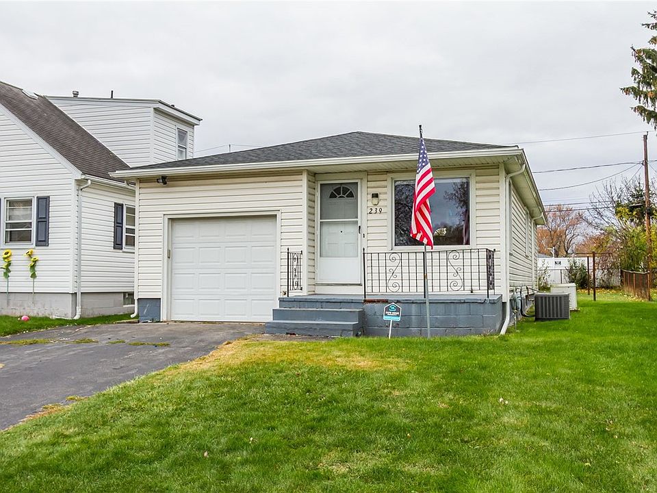 Discover easy ranch living at 239 Woodside Place, a just-the-right-size home in Irondequoit. With an attached garage and a partially fenced 0.12-acre lot, this home offers convenience and comfort. Step inside to a bright and welcoming layout. The eat-in kitchen offers a stainless steel fridge and great counter space. Two well-sized bedrooms and a full bath complete the main level. The full basement adds more storage space, and the washer and dryer are included. Significant mechanical and structural improvements have been completed for peace of mind, including a new roof (2024), as well as updated windows, HVAC system, and plumbing. A whole-house generator adds an extra layer of security and comfort, ensuring uninterrupted power during storms or high-demand periods. Outside, enjoy an easy-to-maintain yard and a 1-car garage, perfect for storage, parking, or hobby space. The front patio is a great place to enjoy fresh air, while vinyl siding makes maintenance simple. Located near the Irondequoit Community Center, Target, and lots of dining options! With major updates already completed and a layout that maximizes simplicity and comfort, 239 Woodside Place is a fantastic opportunity for first-time buyers, rightsizers, or anyone seeking low-maintenance living!. **NO NEGOTIATIONS UNTIL WEDNESDAY 11/26/25 AT 10AM **