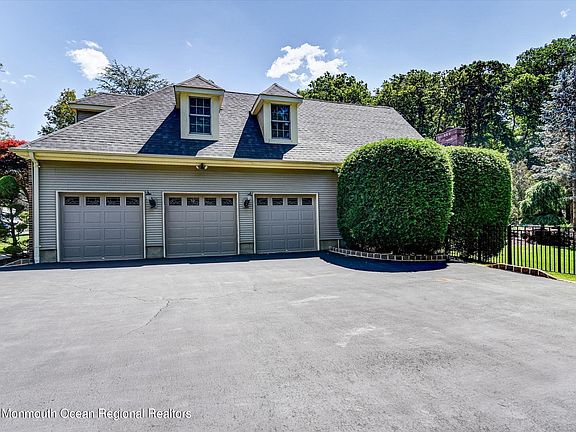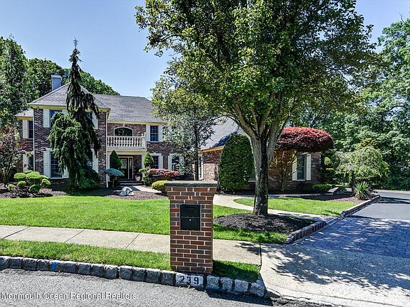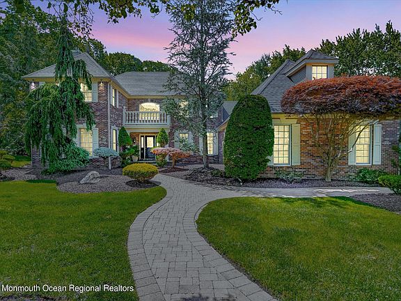 You'll definitely love this sophisticated North facing custom colonial home situated on a peaceful cul-de-sac in the highly sought Regency Oaks in Morganville, NJ! This one and only Tuscan inspired home offers 6 bedrooms, 3 full baths, 2 half baths, and a full finished basement with a gym. It has an en-suite downstairs and a bonus room utilized as a 7th bedroom. New oak wood floors upstairs, new roof, refinished floor in family room, new wood stairs and iron spindles. Chef's kitchen has 2 sinks, one of which is copper, and a pot filler over the wolf stove range. With double wolf oven and 2 sub zero refrigerators built in behind the cabinetry. Granite countertops and custom made maple wood cabinets, and Tumbled Spanish Travertine kitchen floors.
