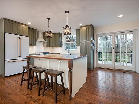 OFFERS DUE 11/22 BY 4PM. Totally renovated ranch on a beautiful piece of property! Drive up to the circular driveaway and picture yourself relaxing on the wrap around covered front porch overlooking this one of a kind property with both a creek and a pond. Wide width wood plank flooring and updated fixtures create country charm in the great room. Remodeled dream kitchen w/ 6 foot island and high end appliances is a chef’s delight. Owners suite w/ attached full bath featuring walk in shower and tub. 2nd bedroom w/ ensuite full bath updated w/ walk-in tile shower. 3rd bedroom and ½ bath complete first floor. Basement has finished area for more living space and walk out access to the property. Updated mechanicals in the unfinished portion and plenty of storage. No need for a swimming pool when you have a pond on your property or can wade through the creek that runs through it. A portion of the property has been fenced off for fido and there is a 1 car detached garage.