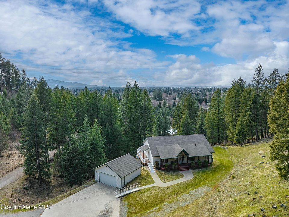 A very rare opportunity presents itself... to own a home on FORTY ACRES at the edge of Dalton Gardens, on the lower tier of Canfield Mountain... just minutes to town and all conveniences. Accessed from a private gated entry, you'll discover a solid home with good bones, that has been well-maintained, and will only benefit from your own cosmetic updates, 2 car garage, plus a 36' X 40' SHOP. Subject property consists of 3 separate parcels totaling 40 acres. Heavily treed, with a timber property tax exemption in place. See complete legal descriptions in Exhibit A, under Documents. Property is located within the county limits, zoned AG-SUB, allowing splits down to 2 acre parcels. Private well for domestic water, plus a separate reservoir on the property is fed by an underground spring. Home is served by natural gas, plus is equipped with a 16kw whole house generator.