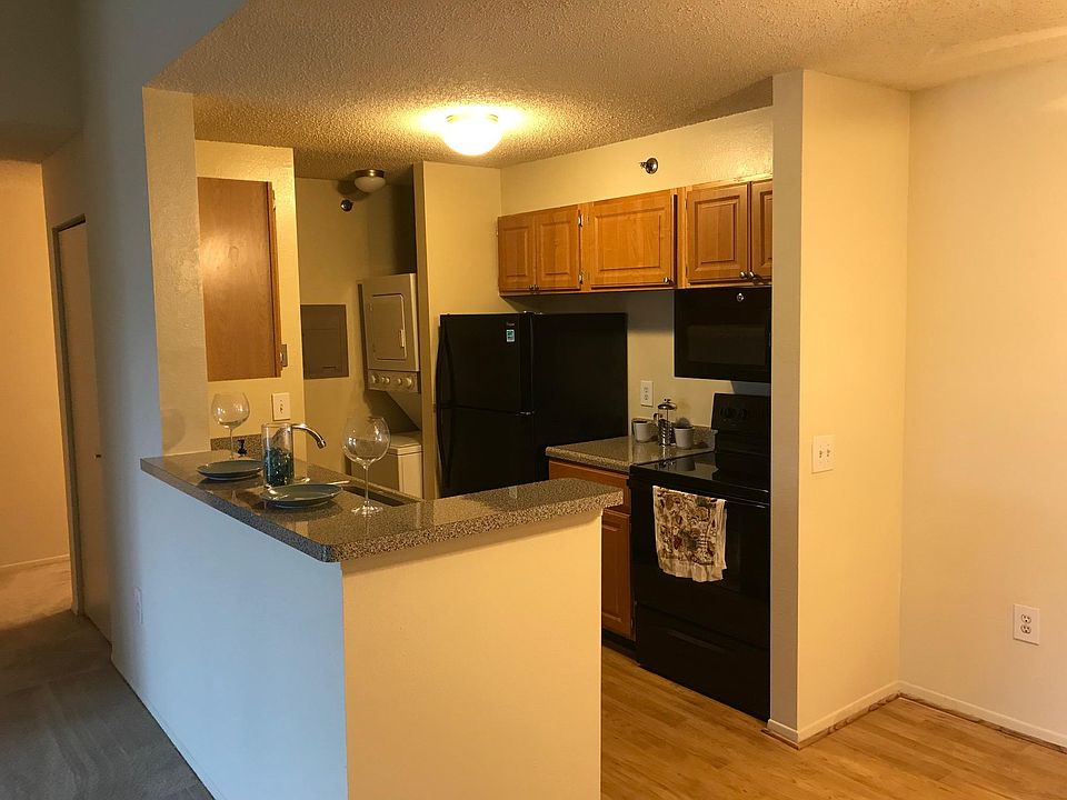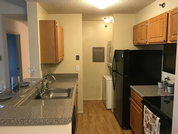 This one-bedroom apartment has 950 square feet with a natural wood burning fireplace, private balcony, and 13 foot vaulted ceilings. Water/Trash/Sewer a flat rate of $40 paid with rent