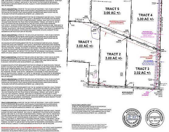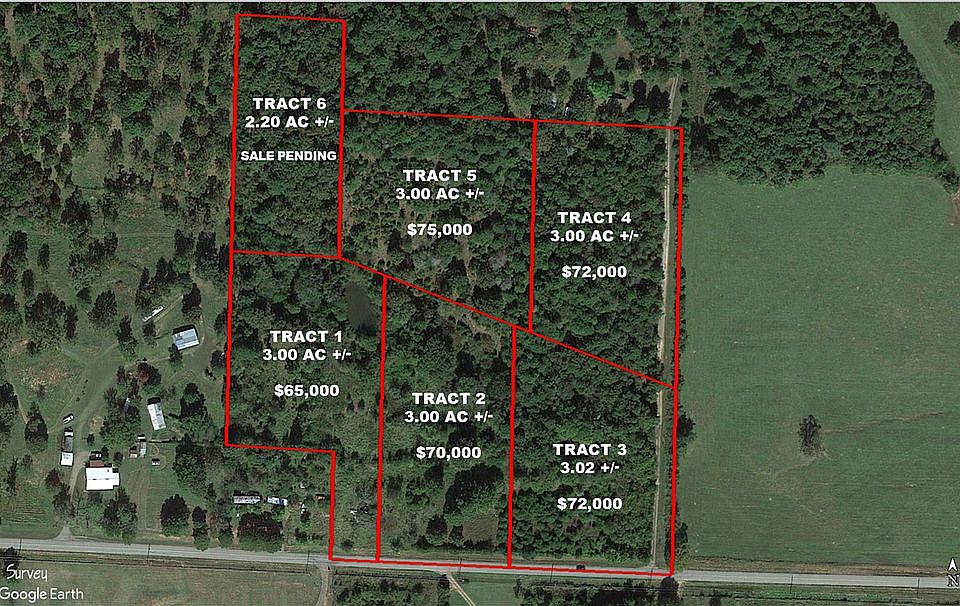 There are 5 tracts for sale, each tract is 3 acres. Price ranges from $65,000 to $75,000 per tract. 2390 Morgan Road is the address for Tract 1 only. There are Restrictive Covenants - sample copy available upon request. Electricity and water access available for each tract. A 3% Buyers Agent fee will be paid by Seller. Realtors please do not contact us requesting to list the property.