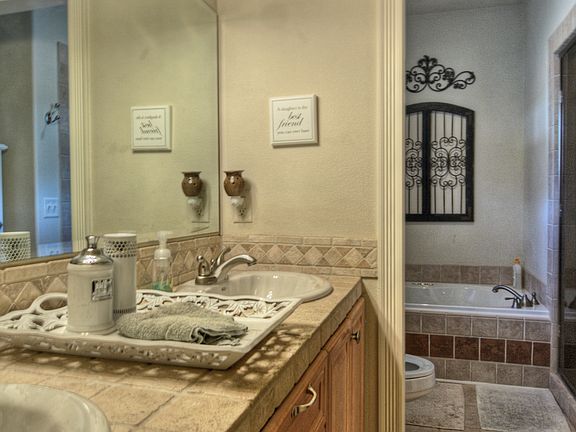 This custom one level 4 bedroom Hucrest home is located on a corner lot! Stucco front exterior and stamped concrete walkway and front patio greet guests into the great room! High ceilings throughout with hand textured finish. Formal dining room with tiled floor extending into the kitchen with granite counters, stainless steel appliances and eating bar. Master suite with jacuzzi soaking tub and steam shower! Extra parking!