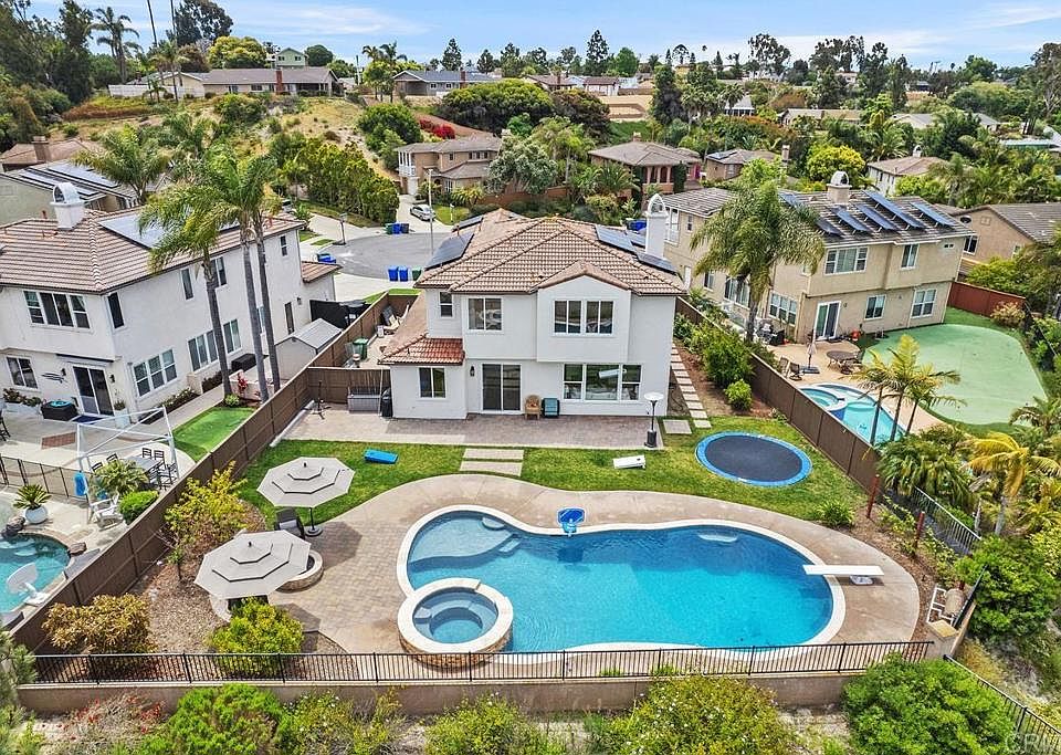 This is the one you've been waiting for! Rare opportunity to own in Pacific Estates. Parklike 10,000SF lot located on a cul-de-sac with private pool, spa, fire pit, and trampoline! Seller spent approx. $150,000 transforming the yard into a tranquil oasis. OWNED SOLAR! This home is better than new! Stunning designer-directed $175,000 home remodel/refresh just completed. Main floor bedroom and bath. Remodeled custom island kitchen with huge walk-in pantry. Formal living room with dramatic volume ceiling. Inviting family room with fireplace. Incredible expanded laundry room with extensive custom built-in storage. Attached 3-car tandem garage. Private location with no immediate rear neighbors. No Mello-Roos. CARLSBAD SCHOOLS! Move-in ready condition!