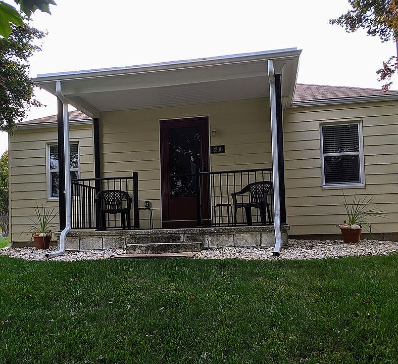 2 bedroom, 1 bath remodeled rancher on corner lot with 2-car garage with electric garage door opener. Multiple vehicle paved driveway. New kitchen with refrigerator, stove, microwave, dishwasher. Spacious living/dining combo. Hardwood floors in living room and both bedrooms. New bath with walk in shower. New high efficiency gas furnace. New hot water heater. New basement water control system just installed. New central air unit. Ceiling fans in all rooms. Landscaped yard with a brick patio and walk. New doors and windows. Enclosed sunroom/back porch.