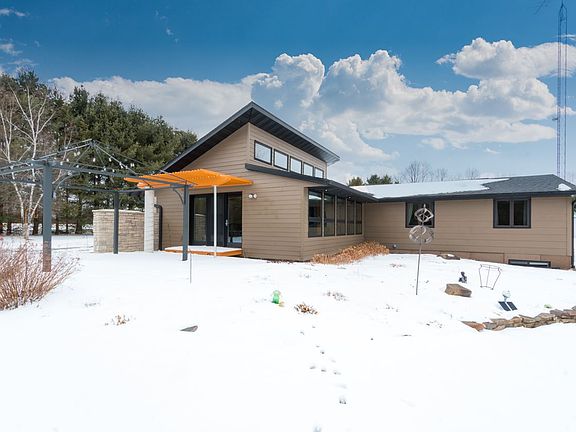 In 2006 and 2007 Revelations Builder/Architects created a 26 X 24 addition with tons of natural light and a redesign of the original home. Other improvements include: New furnace with air exchange heat recovery system in 2006; new roof , additional blown insulation over the fiberglass and new 3/4 inch hardwood flooring in 2007; generator electric panel with double throw switch in 2010; new washer and dryer in 2011; new top-of the-line Marvin Infinity windows in 2012; new carpet in the bedrooms in 2013.New water heater in 2014; new water softener in 2015; completely gutted and remodeled bathrooms with heated tile floors in 2 bathrooms 2014/16 ; all doors and woodwork replaced in 2016; painted the exterior of the house in 2017; new furnace burners and exhaust blower in 2017; insulated both septic tanks and replaced cast iron pipes with PVC between the house and tanks in 2017. The 45 X 81 foot storage building was built in 1998. The home also features a 6" submersible well and a radon mitigating system, an invisible dog fence and an in-door/ out-door dog kennel. All of this on 35 acres located between Stevens Point and Wausau just east of Lake DuBay. The Managed Forest Land (MFL) program has one last cutting due by December 2018 and expires December 31, 2020.