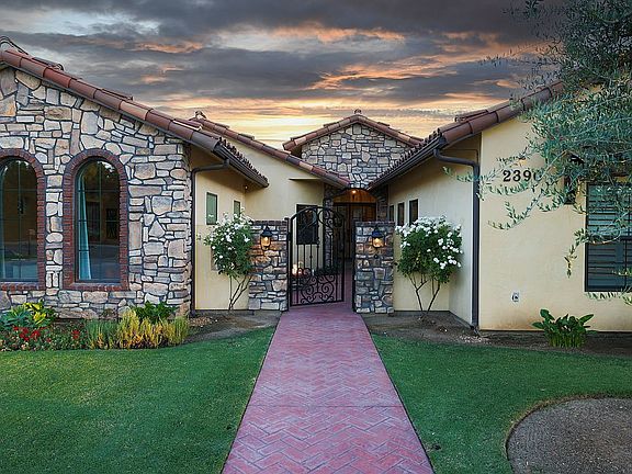 Experience exceptional craftsmanship, high-end finishes, and cutting-edge comfort in this 3,349 sq. ft. Mediterranean-style masterpiece set on a sprawling 16,906 sq. ft. lot in one of Clovis’s most sought-after neighborhoods. Every inch of this property reflects thoughtful upgrades and timeless style, creating a home that is both luxurious and inviting. Impressive circle driveway with RV parking and a charming courtyard with coded entry Custom tile roof and Mediterranean-style architecture exude timeless sophistication LED programmable color-changing landscape lighting to create the perfect mood for any occasion Commercial-grade electric gates (WIFI-enabled) and built-in 4K security camera system for privacy and peace of mind Gas fire pit in courtyard for intimate gatherings Backyard entertaining area with a wood-burning fire pit, rock accent sitting wall, and prewired under-edge wall ambient lighting to enhance evening ambiance Gourmet outdoor kitchen with sink, storage cabinets, and granite countertops, plus Memphis Grilles wood pellet BBQ/smoker Large outdoor dining area perfect for hosting family and friends Outside storage shed for added convenience Interior Highlights Full wood plank tile flooring throughout common areas and 6" baseboards for a refined finish Two fireplaces and French doors that invite natural light and indoor-outdoor living All new windows and doors throughout the home for energy efficiency and style Kitchen features granite countertops, Quartzite island, Jenn-Air 5-burner gas stovetop, electric convection oven, built-in microwave, oversized farmhouse sink, and custom-designed cabinetry Office/study with professional-grade soundproofing, solid-core door, and full insulation Primary suite boasts a jetted spa tub, French doors, new carpet (2020), and a large walk-in closet with custom-designed cabinetry, center island, and Quartzite countertop Built-in Dolby Atmos Klipsch 7.2 surround sound in living room for the ultimate entertainment experience Addition completed in 2020, remodel completed in 2023 Newer 3-zone HVAC system with all new ducting, radiant barrier, and WIFI thermostats Newer tankless water heater with recirculation for near-instant hot water Newer attic insulation plus attic storage above garage Commercial-grade fog system in courtyard & patio (lowers temps 10–15°F) Newer garage doors & openers with WIFI capability This home is a showcase of meticulous attention to detail and modern convenience, offering a seamless blend of elegance and everyday comfort. From vibrant evenings under the color-changing landscape lighting to cozy mornings in your Quartzite-topped kitchen, 2390 Swift Ave. is ready to welcome you home.