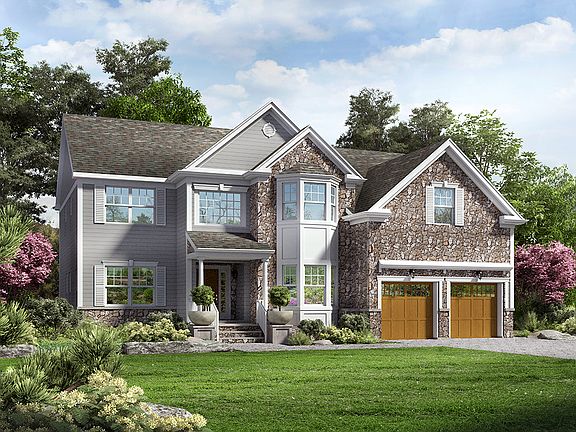 At 3,243 square feet, the Crown Piece brings together the best of all worlds. Enter this lavish estate home from the covered porch to find a lovely two-story foyer, off of which sit the living room, private study plus bathroom, and gourmet kitchen with dinette. Connected to both the kitchen and the living room is the exquisite dining room, nestled in the corner of the house and complete with hardwood floors and crown molding, offering a sophisticated entertaining experience. In the opposite corner, enjoy the inspiring two-story family room, featuring lots of light and an elegant fireplace. Upstairs, find 4 bedrooms, including the master bedroom suite, which features two walk-in closets and a large bathroom. Features 2-car garage.