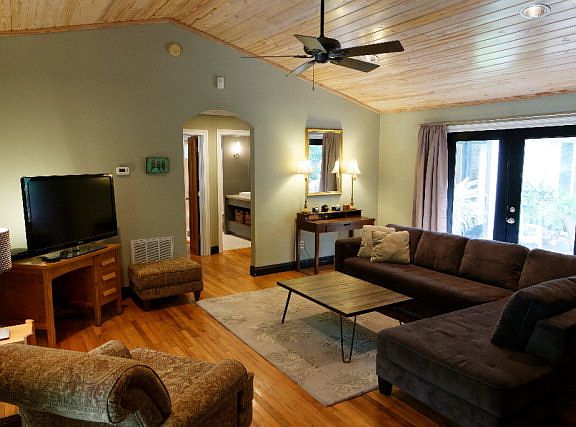 From your first glimpse of the majestic oak in the front yard to the beautiful tree dotted back yard, you'll find yourself in love with this amazing Montrose cottage. Architectural touches that are sure to bring a smile will be found throughout. Vaulted tongue and groove ceilings in several rooms and hardwood floors bring a coziness to this home. End cap flooring and poured concrete counters make for a unique and fun kitchen. A brick wood burning fireplace serves as the divider between the living room and dining room. A great home for entertaining as you easily flow from living, dining to the deck located just off the living area. The large master bedroom boasts a roomy walk in closet and a bathroom with jetted tub. Of course enjoying many happy, lazy hours on the back deck will definitely be a given! Home's exterior has recently been freshly painted and guests/hall bath updated.
