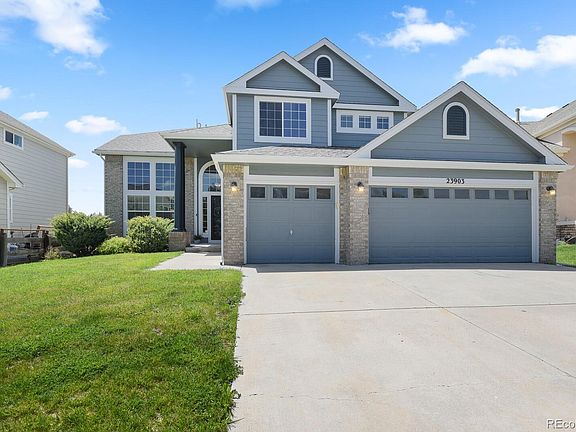 New carpet!!! Location, location, location...perfect family home in a wonderful Parker neighborhood with mountain & golf course views. This floor plan has plenty of space for all with a bedroom/office on the main floor & mostly finished basement. Formal dining & living rooms. Kitchen island with with gas range & closet pantry. Walks out to backyard. Open to family room with gas fireplace. Main floor laundry & powder bath. Upstairs has a big master bedroom with views. Five piece primary bathroom has been remodeled. Great walk in closet space. Also 3 bedrooms & a full bathroom with 2 sinks upstairs. Basement has a great room, bedroom, bathroom & 2 spaces where you could build a bar, have games, office, exercise equipment, etc. Storage room as well as storage under the stairs. Three car garage with service door. Enjoy your fully fenced backyard. Home has central air. New storm & screen doors. Sump pit. Garage keypad. Ring doorbell. New gray carpet installed 10/19/23. Close to I25, E470, DIA, mountains, restaurants & malls. Inclusions: Kitchen: Fridge, dishwasher, microwave, range & double oven. Laundry: Washer & Dryer Ring doorbell Dresser drawer cabinet in master closet Two hanging shelves in guest bedroom upstairs Two portable shelves at basement storage