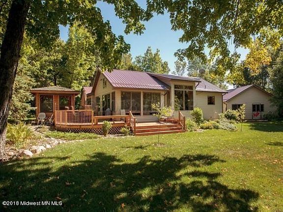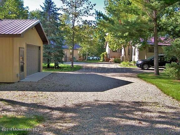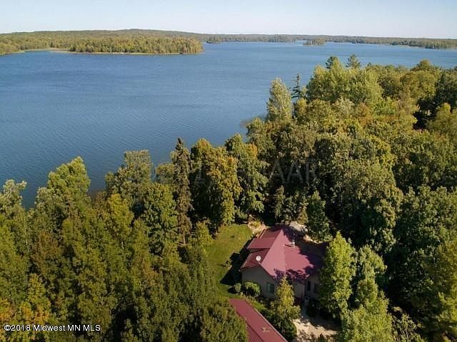 PERFECT ISLAND LAKE ELEVATION with 209' of hard bottom lake shore (on two separate lake lots) with panoramic views sitting on 2.67 acres. One level lake living at it's finest. Kept up perfectly! All steel siding and roofing makes this ''MAINTENANCE FREE''!! Open kitchen, dining,living room. Gas fireplace, sauna, 3 bed/3 bath/office. FOUR OUTBUILDINGS!! Cedar gazebo. Need a studio, office or extra bedrooms? Separate from house is a dual heat two room studio/office/bedroom with 3 sky lights...even has it's own patio doors with deck!! 26 x 26 Garage. 26 x 46 heated shop. 18 x 24 3rd shed. Three have matching steel house siding. HOME WARRANTY INCLUDED!! This truly is one of the premier lake lots in Becker County. Make sure and watch the video.