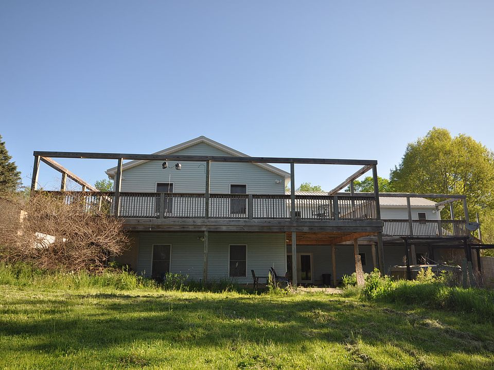 2264 sf 4 bedroom 5.5 bath home, with a walkout lower level. 8.94 acres of land that features an in-ground pool, a detached 4-car garage, 2 storage buildings, 2 horse barns with electric and water (need work) and more! Lead Glass Chandaliers and lights on dimmers thru home. 4 ensuite bedrooms. Marble heated bathroom floors both levels. Ceiling fans in bathrooms with heat option both levels. 2 Standing Hot Tub Shower units could be hooked up. Granite kitchen, Granite island and Granite bathroom countertops. Professional Series Stove and 2 convection ovens, dishwasher in Stainless Steel. Cherry custom built floor to ceiling kitchen cabinets. Compete Kitchen in basement with white marble floors.Corner of Potato Creek. Dream walk in closets. Property to be sold AS IS. Seller will make no repairs. Wrap around walk out deck overlooking backyard pool and woods. Professionally landscaped.