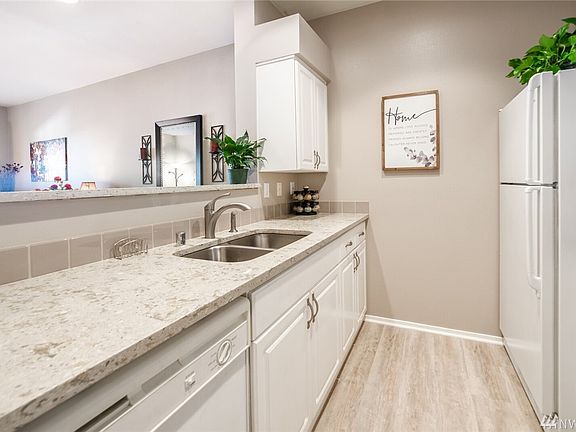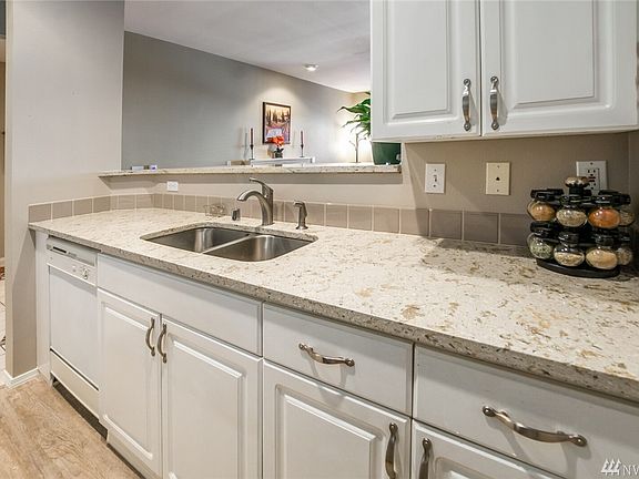 Beautifully appointed, gorgeous condo with updated quartz kitchen counters and new flooring. Easy access with no stairs and an elevator to and from parking garage. PERFECT for grocery and shopping trips! Washer and dryer in hall closet will stay. Ample storage with one closet on the deck and one large padlock-closet in the garage. This is a first floor unit, yet the back deck is above ground as property slopes down!! Quick access to freeways for easy commutes. Pet friendly. No rental cap.