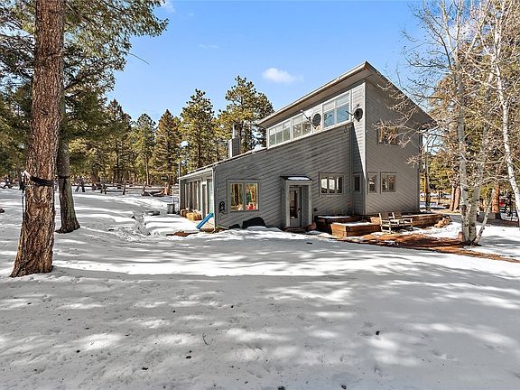 Welcome to your mountain home on a 3 acre corner lot in Piano Meadows of Conifer! Flat & usable land perfect for Horses and other animals - outside riding arena, shed for storage, 2017 custom 12 x 22 loafing shed with tack room, chicken coop and an oversized 2 car detached garage complete with a extensive workshop & 220v. The main floor offers a large farm house kitchen with eat in breakfast nook, a main floor bedroom with private deck, 1/2 bath, laundry, family room with NEW CARPET, and a 250 sf sunroom for dining, game room, exercise room and more! The exposed upper level is light and bright and has your master bedroom with walk in closet and an urban brick accent wall, full bathroom, and 2nd bedroom, also with an urban brick accent wall. New Roof 2016, New Well pump 2018, new fence, new reverse water system. This home is waiting for you - warm, cozy and ready for you to move right in!