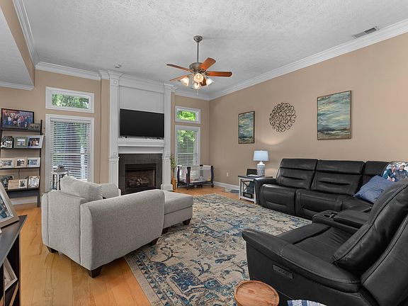 Walk out your back door into your own private oasis that joins Panther Creek State Park and private pool. Over 3800 sqft of finished living area, 4 bedrooms & bonus room, 2 full baths and 2 half baths, main level primary bedroom, huge kitchen with custom hickory cabinets and pantry, great room with fireplace and 12' ceilings, formal dining room, large laundry room on the main level, man cave/large rec room and bar for entertaining on the lower level with nice patio area. Main level 2 car garage and basement garage for boats and toys. Boat ramp and marina located in subdivision. This home was a custom built home for the current owners.