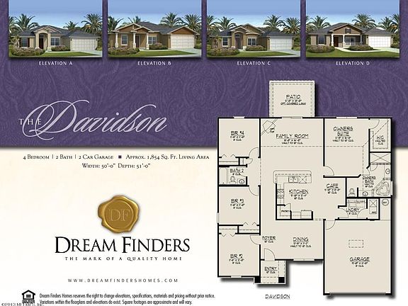 New single family homes by Dream Finders Homes! This Davidson will feature 4 bedrooms, 2 full baths, double garage, separate dining room, open spacious kitchen with café nook family room with sliding glass doors to a patio. Master suite has large WIC, separate dual vanities, shower and garden tub, tile flooring, stainless appliances, blinds throughout, granite countertops, and much more!
