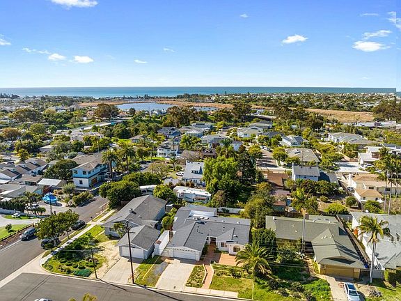Single story home in Carlsbad on a cul-de-sac! This home has a new roof, dual pane windows and laminate wood flooring. As you enter through the front door, the kitchen is to your left. It's a large kitchen with a center island and lots of cabinet space. The living room sits adjacent to the backyard and has plenty of room to spread out. The large windows and two skylights provide an abundance of natural light. The dining room with built-in cabinets and countertop has plenty of space for your dining room table and chairs. The primary bedroom has an alcove with two closets and space for a chest of drawers. The primary bathroom has a separate shower and sunken bathtub. The house sits in the center of the 7700 square foot lot. Create an inviting outdoor living space on the giant patio in the front or under the covered patio in the back or both! You’ll love the time you’ll save with the low maintenance front yard. If you have a green thumb or like to garden, the backyard has lots of potential. There’s even a stucco shed! This home is ready for a personal makeover. The proximity to Carlsbad Village with its fabulous restaurants, shops, farmers market and more is just minutes away, and short distance to the Carlsbad Lagoon.