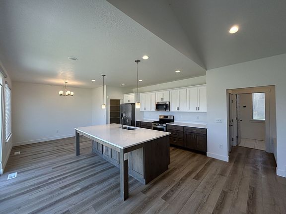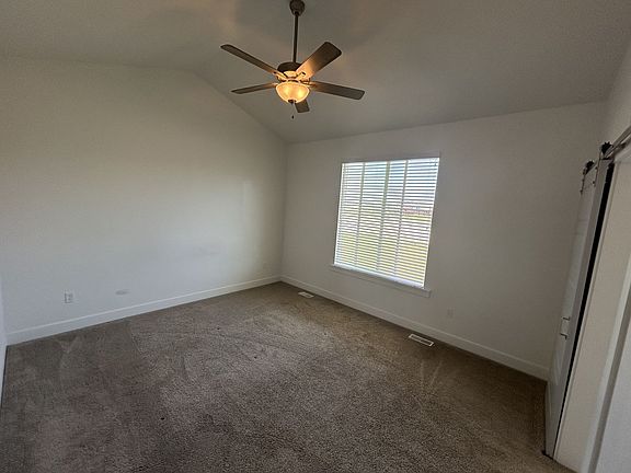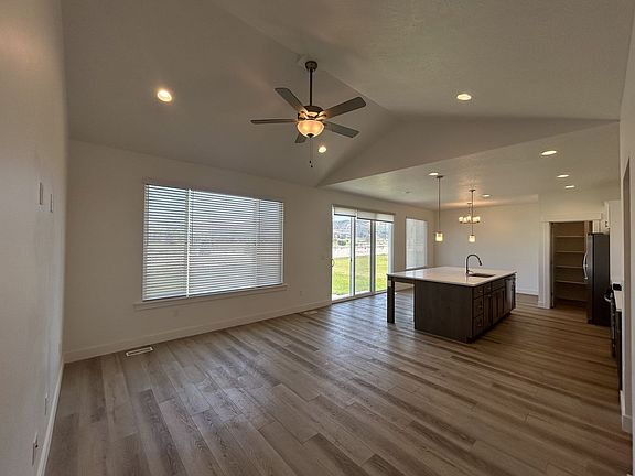 Welcome to your new home in Eagle Mountain! This beautiful 2022 rambler offers 3 bedrooms, 2 bathrooms, and an open-concept layout with vaulted ceilings that make the home feel bright and spacious. The modern kitchen comes with a built-in oven/range and dishwasher, while the primary suite features a walk-in closet and private bath with a separate tub and shower. Enjoy year-round comfort with central air and heating, plus the convenience of a laundry/mudroom off the garage entry. A full unfinished basement gives you plenty of storage space, and the 2-car attached garage with opener adds even more practicality. Located in a quiet, family-friendly neighborhood with sidewalks and quick access to Pony Express Pkwy, schools, and shopping, this home is the perfect blend of comfort and convenience.