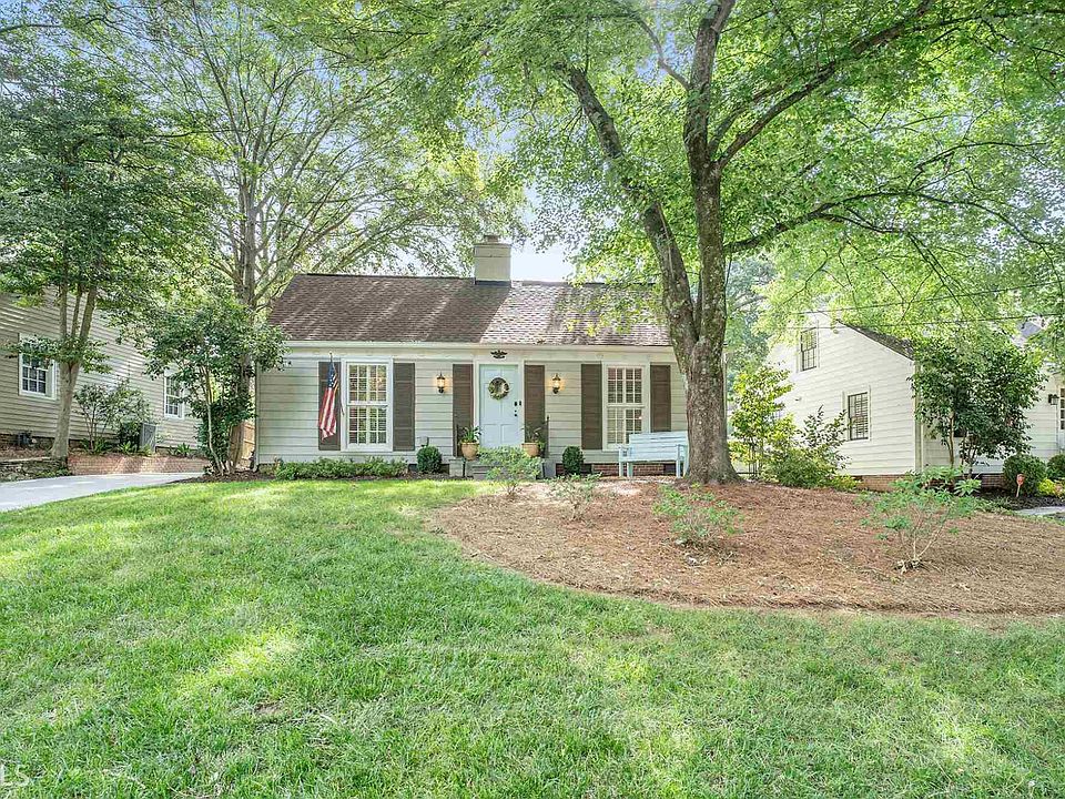 Charming 2 bedroom/2 bath cottage located on quiet cul-de-sac in popular Peachtree Hills neighborhood GÇô walk to Peachtree Hills Park, the Duck Pond and Peachtree Battle Shopping Center! Entry foyer leads to large fireside living room with gorgeous vaulted ceiling and filled with natural light. Updated kitchen opens to dining room. Hardwood floors, plantation shutters and southern classic details throughout. Main floor master bedroom with renovated bath and custom shelving closets. Secondary bedroom features en-suite bath.Unique upstairs bonus room - perfect for office or playroom - plus plenty of storage. Sunroom with built-in bookshelves and wall of windows overlooks delightful brick patio and lush landscaped backyard with privacy fence. Rare 2-car detached garage.
