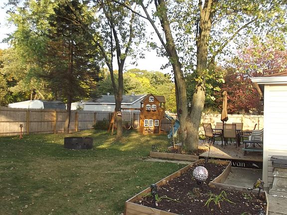 All-brick ranch home with basement on small cul-de-sac with spacious fenced in backyard and oversized detached garage. Main level offers eat-in kitchen with all appliances included, living area, 3 bedrooms and full bath. Pergo flooring in living, kitchen and hallway with carpeted bedrooms. Basement with rec room, craft room ( could be 4th bedroom) 3/4 bath and large laundry area. 2016 new roof on house and garage along with garage siding, Main floor windows in 2013, basement windows 2020. AC serviced and cleaned May 2020. Kids two-level Clubhouse playset with flower window boxes, slide, swing, mailbox and glider along with bonfire ring remain with the sale. Within minutes to Toll Road, Expressways and Indiana Beaches. Subject to seller securing home of choice.