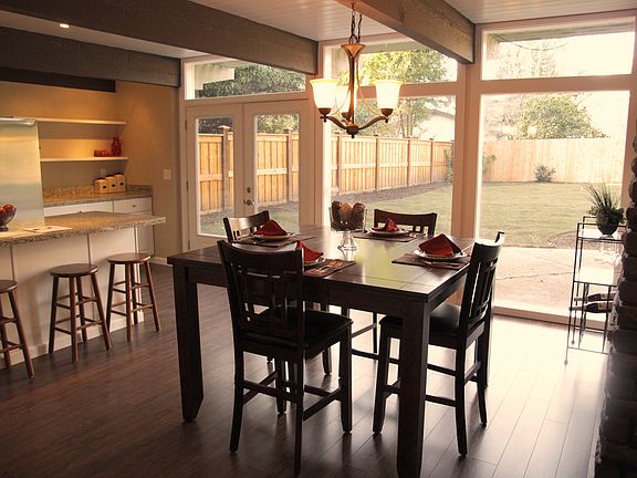 Dramatic mid-century modern on large private lot. Tons of windows, open floorplan, beamed ceilings, wood laminate entire main level, and brick wood-burning fireplace. Remodeled gourmet kitchen - white cabinets, huge island, granite countertops, stainless appliances and pantry.3 bedrooms plus loft upstairs, balcony off master, walk-in tiled shower and walk-in closet. Oversized garage PLUS RV parking. Not a drive by! Must see inside!