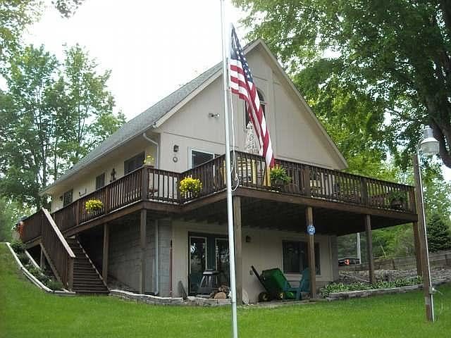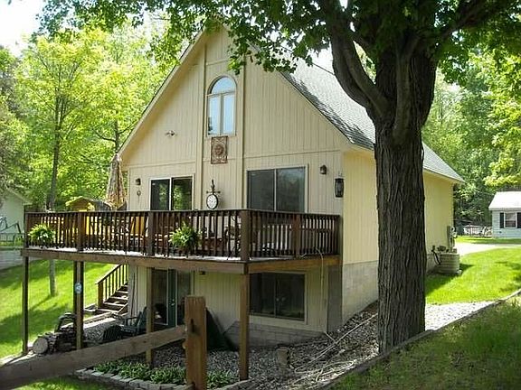 Spotless 2 Bedroom Chalet, with 65 feet on all sports Secord Lake, Beach, Seawall. 12x24 wrap around waterfront deck. Shed has garage door, Walk out finished lower level.