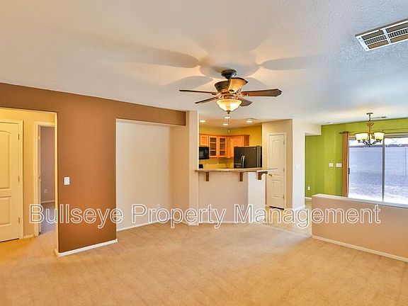 Do not miss this wonderful 3 bedroom / 2 bathroom home with two car garage. Enter and find a split floor plan with two-tone paint, carpet/tile flooring, and comfortable living. The kitchen comes complete with appliances including refrigerator, upgraded countertops, and a breakfast bar! The master bedroom features an attached full bathroom with upgraded countertops. Step outside to find a covered patio and low maintenance desert landscaping. 1 MONTH FREE WITH A 13 MONTH LEASE!