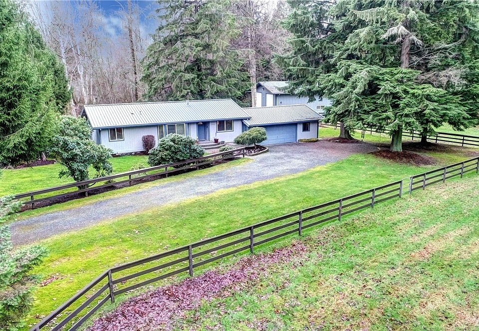 Private country setting on 2.7 acres that's perfect for horses or mechanics! 40x60 shop has 1/2 bath, water, power & welder ready w/ 220. Main house has a open floor plan that features a gourmet kitchen, 2 bedrooms, den & 1.75 baths. Over sized 2 car garage, huge deck, perennials, fruit trees & life time metal roof. Pasture, 2 open stalls & hay storage. Guest quarters in shop has 2 bedrooms, 1 den, 2 bathrooms, 2 kitchens, 2 living rooms has 1600 sq. ft & separate entrance. Quick access to I-5.