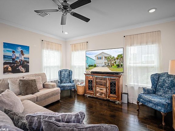 Cypress Village is coastal living at its finest with its resort style amenities that include a beautiful zero entry pool, hot tub, and lazy river. A huge plus is being located across from Orange Beach Middle/High School and Performing Arts Center adding to the appeal of this gorgeous home boasting 3 bedrooms and 2.5 baths. Designed with an open floor plan including 10' ceilings and back and front porches with a balcony just off the primary bedroom are only a few of many reasons you will want to make this home your family’s primary or second home. The kitchen includes a gas range, stainless steel appliances, recessed lighting and granite countertops. The second level offers 3 bedrooms, 2 bathrooms and laundry room with washer and dryer included. The gorgeous custom built pergola makes the back patio the perfect place for entertaining or enjoying a nice family cook out. You’ll be within miles of the beautiful white sandy beaches of Orange Beach and a short golf cart ride to The Wharf for shopping, dining, concerts, and lots of entertainment and family fun! Make it a point to see this one right away! It is the responsibility of the buyer/buyers agent to verify all measurements.