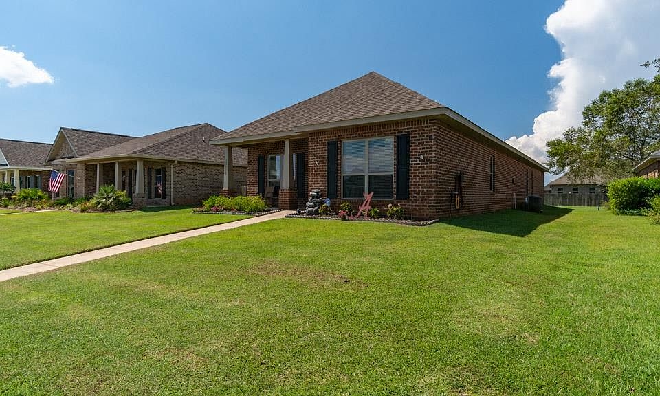 Welcome home! If open floor plan is what you are looking for then look no further. Open Living room/Kitchen combo with a half bath placed perfectly for your guest. With all granite throughout, no need to upgrade anytime soon. The floors are hardwood in living room and one bedroom, carpet in the other two bedrooms and tile in all wet areas. This home is in a great location just minutes from Daphne and Fairhope and easy access to I-10. Fenced back yard with driveway facing the alley you have nice private backyard. Home has ADT security, with cameras at all the doors. Also smart thermostat keeps your home at just the right temperature for you.