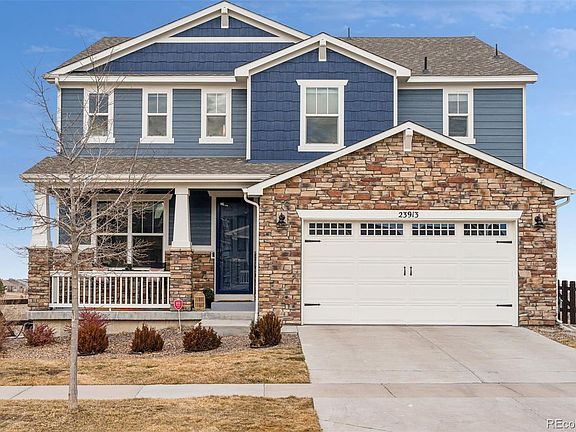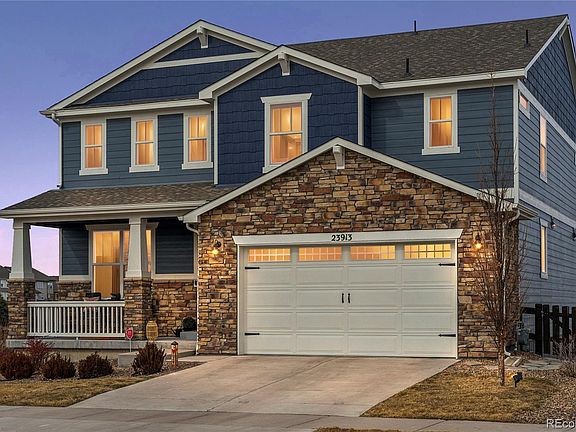 Welcome home to the picturesque neighborhood of Inspiration in Aurora! Situated on a coveted lot backing to open space, enjoy uninhibited mountain views from every floor! Nestled among open spaces, lush parks, & endless trails, this community offers the perfect blend of outdoor beauty & comfortable living. As you step inside this immaculate home, you're greeted by a delightful office with double doors, bathed in natural light from the expansive windows—perfect to work from home or as a main floor flex space. Continuing inside, one is greeted by a brand-new open-concept kitchen boasting gleaming quartz counters, a five-burner gas cooktop, a built-in oven w/convection, dishwasher, refrigerator, stunning backsplash, & spacious eat-in island that seamlessly flows into the living & dining areas. Dining space is positioned by large windows & glass doors to enjoy eating al fresco w/ serene patio views, while the living room impresses w/ soaring vaulted ceilings & abundant natural light—ideal for both quiet evenings & entertaining guests. Upstairs, you'll find a versatile loft, laundry room & 2 generously sized bedrooms—each w/ a walk-in closet—connected by a stylish Jack & Jill bathroom. The highlight of the second floor is the impressive Primary Suite, featuring a private covered balcony w/ durable Trex decking, a BRAND NEW luxurious four-piece ensuite bath w/ top-of-the-line luxe finishes creating a spa-like retreat. Two spacious closets & breathtaking views complete this primary suite. The walk-out basement, w/ its expansive windows, provides endless possibilities for additional living space & is currently used as a gym/movie area! Finally, the true gem of this home—the backyard. Fully fenced, landscaped to perfection & backing to open space, you are sure to enjoy it from the walk-out basement or exterior stairs from the main floor! Soak in sweeping mountain/city views & enjoy your morning coffee w/ direct access to the extensive trail system!