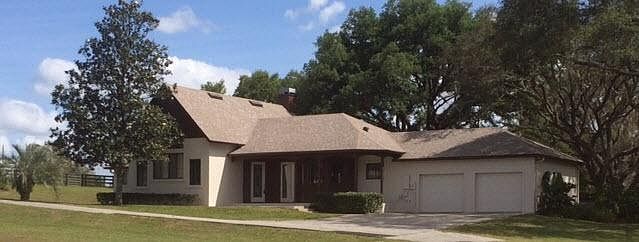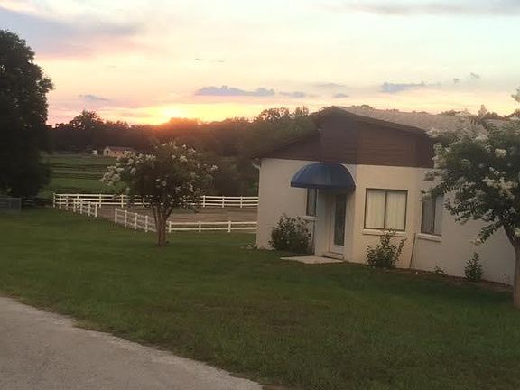 Fourteen acre horse farm with gated entry, house, barn, and detached garage. House has 1807 square feet, three bedrooms, two bathrooms, laundry room, attached two car garage, fireplace, vaulted ceilings and ceiling fans. Barn is concrete block construction with concrete center aisle, 12 stalls, air conditioned tack room with restroom and laundry, feed room, and hot/cold wash rack. Riding arena is sandy clay and approximately 235' by 93'. Four car detached garage provides extra storage space. Five pastures with four board fencing and hot wire. Two horses are permitted, along with a total of two dogs/cats. Rent includes pest control and landscape maintenance.