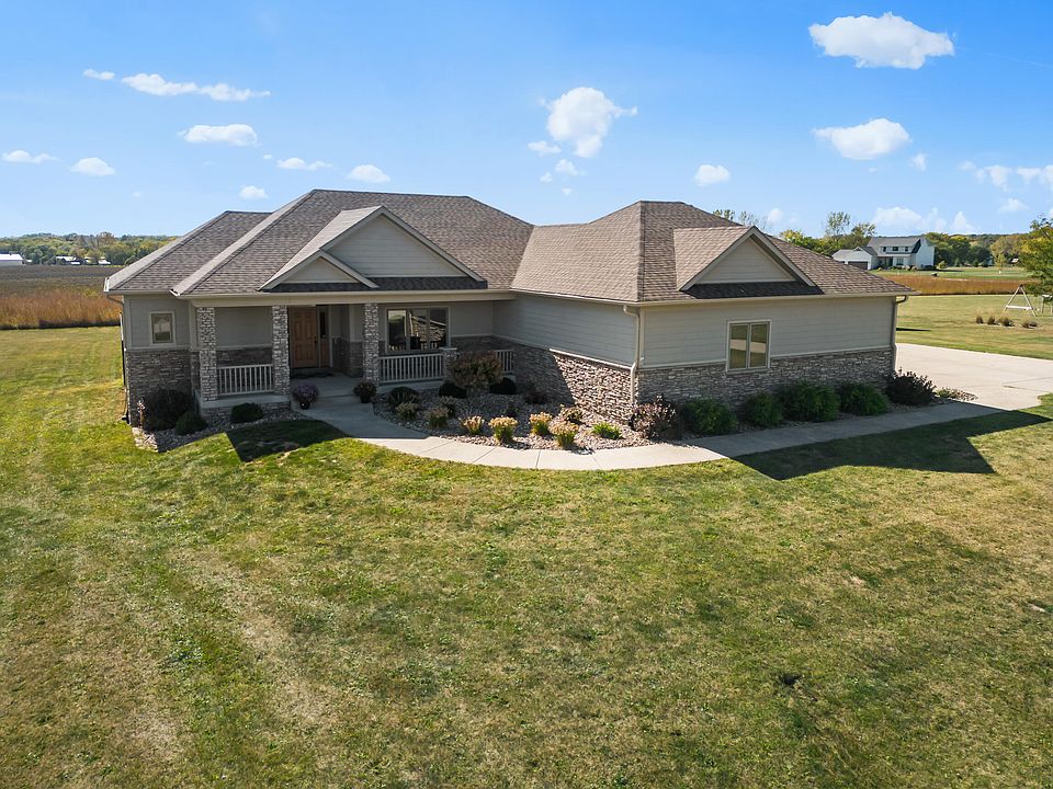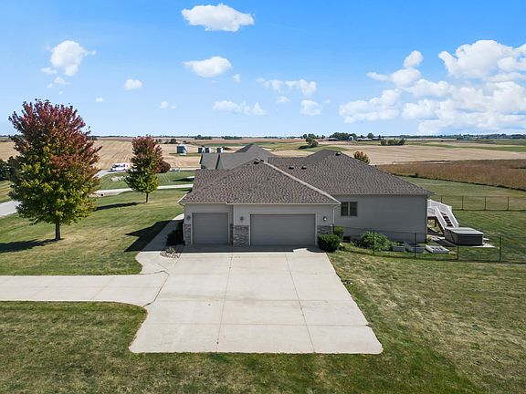 Are you or someone you know searching for a stunning ranch home in a picturesque rural subdivision within the Gilbert School District, just minutes from Ames? Look no further! This exceptional property in Buck Hill Estates sits on a spacious 1.16-acre lot and features 4 bedrooms, 3 bathrooms, and over 3,000 beautifully finished square feet. Recent upgrades include a new geothermal heating and cooling system installed in 2024, luxury vinyl plank flooring, fresh carpeting in the main level living room, a new roof added in 2019, and updated landscaping also completed in 2019. The expansive 3-car garage is a true highlight, offering 1,130 square feet of space for vehicles, storage, or a workshop. The kitchen is a chef's delight with elegant hickory cabinets, sleek black hardware, a center island, and a stylish linear tile backsplash. High ceilings throughout the main floor enhance the sense of space in the family room, dining area, and kitchen, complemented by arched doorways, an electric fireplace, a central vacuum system, cement board siding, and a partially fenced yard. The lower level is an entertainer's dream, featuring a spacious family room, rec room, an additional bedroom, and a stunning wet bar with granite countertops. It also includes a 3/4 bathroom with a large walk-in tile shower, daylight windows, built-in surround sound speakers, and a versatile bonus room ideal for a home office or playroom. This property offers a perfect blend of luxury, space, and modern amenities—making it an ideal choice for anyone looking to enjoy a comfortable lifestyle in a beautiful rural setting. Don't miss out on this incredible opportunity! The monthly HOA fee covers garbage, internet, satellite TV and street/common space maintenance.