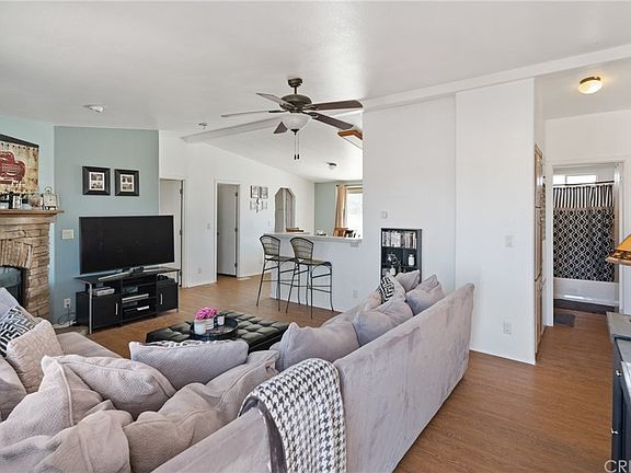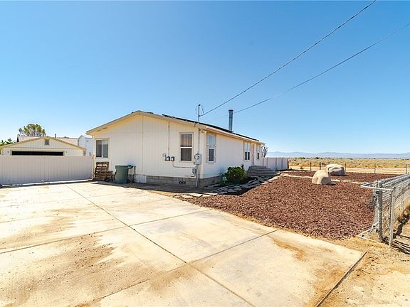 Great Rosamond Home on almost 1/2 acre Corner Lot with Paid for Solar - Check out this 3 bedroom, 2 bath newer 2005 built manufactured home! Newer wood look vinyl flooring through out the living room, kitchen, baths and laundry room, bedrooms are carpeted. Spacious living room has vaulted ceiling, stack stone wood burning fireplace and ceiling fan. Kitchen has vaulted ceiling, gas range, built-in microwave, dishwasher and fridge and opens to the dining area and living room. Master bedroom is good size with vaulted ceiling and nice walk-in closet, master bath has soaking tub, stall shower and access to the laundry room. Out back is a huge deck with built-in BBQ, extra burner, sink, refrigerator, bar area, a sunken spa and room for a table and extra seating. There's also the over-sized detached 2 car garage and the huge RV/Workshop garage with a loft.