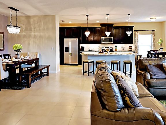 BE SURE TO SEE 3D TOUR! Rarely available SINGLE STORY 5 bedroom, 3 bath, 3 car garage home in community with NO CDD but still has a small community pool. Still in ALMOST NEW condition. Granite counters in kitchen, tile backsplash, under cabinet lighting, Stainless appliances, upgraded penant lights over island and matching chandelier in dining room, hide-away 8 foot sliders leading to covered patio (easy to enclose). Master suite has dual sinks and an ENORMOUS walk-in closet, tub and separate shower. The open concept living area almost guarantees no wasted space. Tile throughout common areas with carpet in bedrooms. Master bath has comfort height toilet, and all baths have comfort height vanities. Small community, LOW HOA.