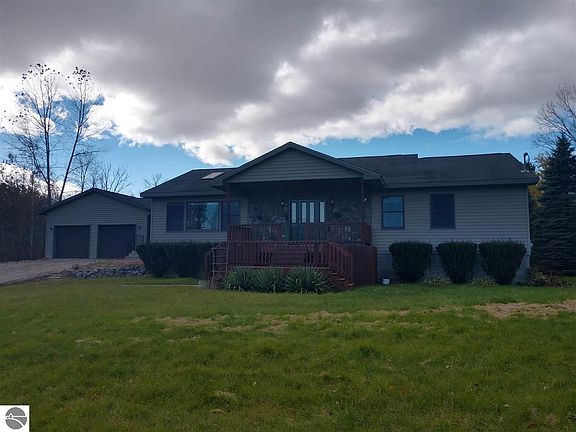 Enjoy this beautiful 20 acre setting nearby Saginaw Bay/Lake Huron! Featuring a mix of woods and open land, this parcel offers a beautiful 3 bedroom, 2.5 bath raised ranch home w/ a full walkout basement for even extra potential living space! This home has an open kitchen/dining area w/ island and doorwall leading to a large covered balcony overlooking the serene backyard scene! The living room offers a cozy feeling along with natural light from the windows and skylights. Enjoy a master bedroom with a private full bath with jet tub, shower and a large walk-in closet along with it's own doorwall to the covered balcony. For storage enjoy a 2 car attached garage and a detached 20x25 metal accessory building! The grounds features a 28' deep pond stocked with multiple fish species, a large back yard and walking paths into the woods. This property truly offers a piece of paradise!