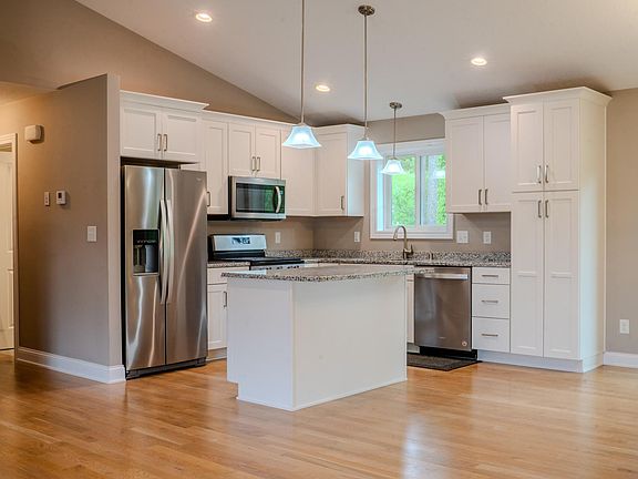 This stunning property is a charming residence situated on a serene wooded lot within the desirable Hundred Acre Woods community. It features durable neutral white oak flooring, elegant granite countertops, a luxurious walk-in tiled shower in the primary bathroom, a 3-car garage, stainless steel appliances, white cabinetry, and a generously sized basement perfect for hosting gatherings. Just minutes away from downtown, the golf course, and parks.