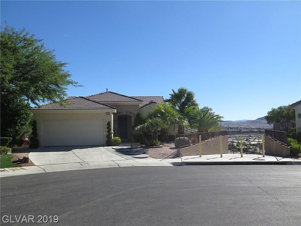 Beautiful Sun City Anthem home on cul-de-sac with great views! Tile floor on the diagonal throughout, with carpet in bedrooms. Spacious great room and dining area. The kitchen has stainless appliances, Corian counters, pantry, island with breakfast bar. Master bedroom suite has walk-in closet, double sinks, large shower. The backyard features a covered patio, lawn and beautiful mountain views! Landscaping maintenance provided by owner.