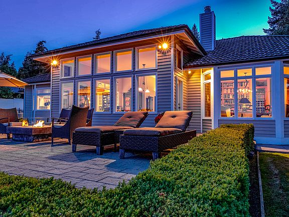 The perfect waterfront home! One level, not too large! Downsizing? This is your home! Spectacular water views of the shipping lanes, Seattle skyline, the Cascade mountains, and Mt Rainier! Easy beach access by shared stairs. Lovingly remodeled home with many custom features. Quaint 885 Sq. Ft. carriage house with 1 bedroom and 1 bath, over 2nd garage, with matching playhouse. Beautifully landscaped acre and orchard with irrigation. Gated entry. Live the lifestyle you've dreamed of on the water! Minutes to Seattle fast ferry.