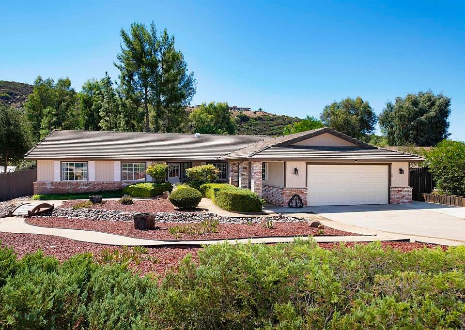 Great value. Country living, San Diego Country Estates. Single level, Ranch Style on .64 acres. Horses OK on this property. Easy care, Drought resistant front yard. Back yard features a pond and deck to relax under the shade trees. Huge covered patio on side yard. Bring your toys. Property has back gate access. Kitchen features stainless appliances and is open to breakfast nook and living room. Huge, brick fire place in living room. Newer HVAC, ducting, and large registers. Fans throughout. Bonus room with pot belly stove. Huge Primary suite, with sitting area. Sola tubes and sky lights brighten the living area. Community offers two pools, award winning golf course, a restaurant and clubhouse, an equestrian center, and extensive hiking and horse trails. Qualifies for USDA 0% down financing!