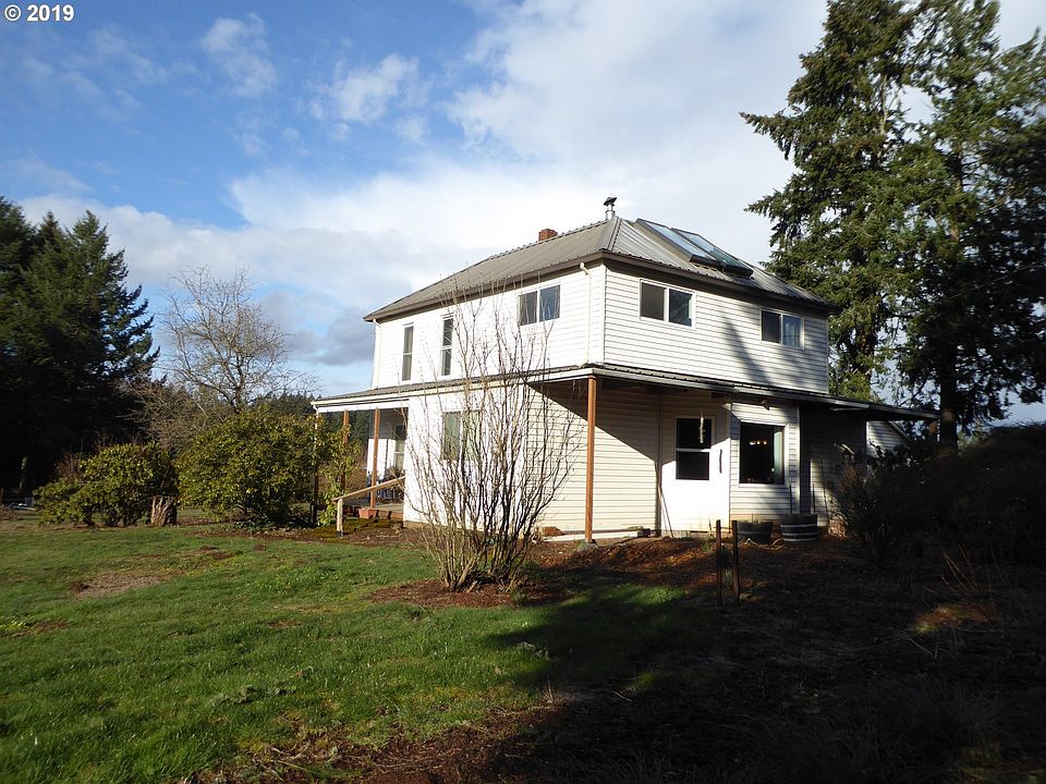 1900 farmhouse on 8.9 acres, 5bdrm, 2ba, large living room, master on main floor, home being sold as-is, seller has been there since 1971, heat source is pellet stove, detached 2 car garage, 36x24 shop, 60x48 barn, Christmas trees, EFU zoning. This is a short sale.