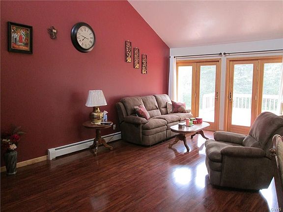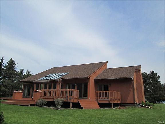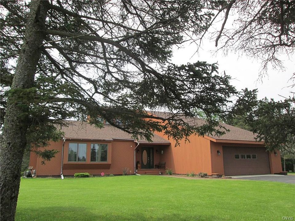 Just 5 minutes from city & 10-15 to Ft. Drum. One of the most private wooded developments w/modern custom homes, all with expansive green lawns. This cedar custom built 1 owner contemporary has floor to ceiling glass across the back for wonderful Southern exposure. Gorgeous cherry kit cabinetry, granite countertops, recent SS appliances, & charming breakfast nook. Gleaming HW floors, skylights, French Doors,1st floor laundry,vaulted 24 ft ceilings.Master bedrm suite, family rm w/fireplace adjoins kit plus sep formal living rm for entertaining.Solarium sun rm w/tiled floor, lg deck w/hot tub & access from M bedrm, living rm & family rm. Full basement w/4th bedrm & w/2nd entry.Huge playroom w/competition size pool table(nego).12x32 workshop,2 car att garage,General Brown schools,low taxes.