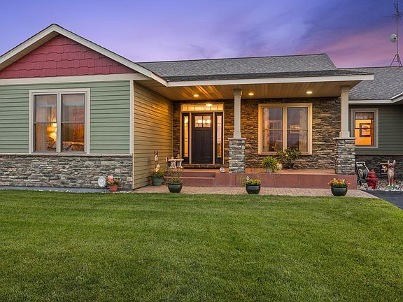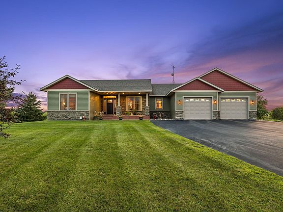 This Beautiful + or - 11.5 Acre Country Property has the best of both worlds located right on the edge of town... it has a Stunning High End Custom Built 4+Bed 3 Bath Walkout Rambler, a 80 x 44 Shed with a Heated (In-Floor Heat) 40 x 36 area with a 10 x 12 Ft Overhead Door and a Bathroom & a 44 x 40 Cold storage Area with 12 x 12 Overhead Door.... Sellers are willing to finish two Bedrooms in the Basement. The Shed and the Oversized Attached Garage on the Home has In-Floor Heat, Floor Drains and Windows...