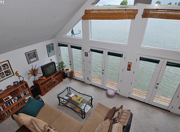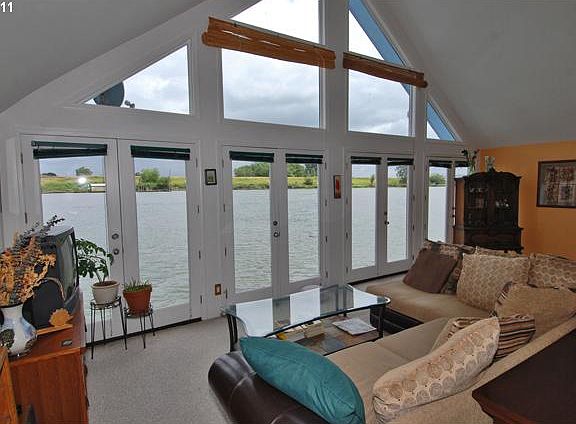 Float home w/wall of windows for wonderful views of Sauvie Isl,River&Mtns!Peaceful setting yet approx 20 mins dwntwn Portland. Main home has 1210sf w/loft mstr & views.250sf tenderhouse for 3rd bdrm/studio/storage.Kit w/ new vinyl windows. Could transform tender into large swim flt for decking out front. Seller Open To ALL Offers, incl poss contract.