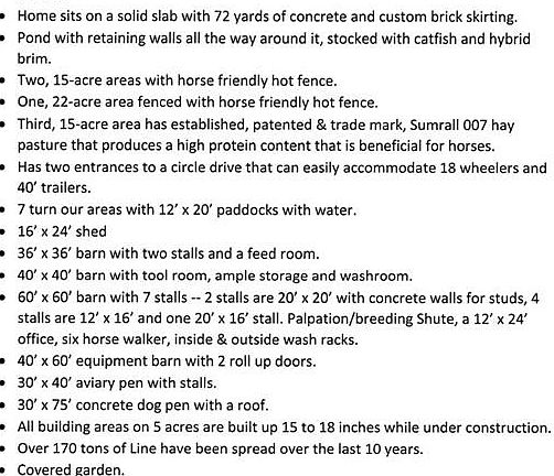 Motivated Sellers! Income producing, 63-acre horse farm for sale. Located 3.7 miles North of I-10, on Newcomer Rd in Iowa, LA. This property boasts numerous sought-after amenities that you must see to truly appreciate. The beautiful main house is a 2010 Oak Creek Platinum modular home. 4 beds 3 bath with 3078 living square feet. The home sits on a solid slab (72 yards of concrete) with a custom brick skirting. Other notable features include; 2 x 6 walls, 2 x 10 floors, 2 living rooms, over sized closets, master suite w/ an office and a fireplace. The property has two 15-acre areas and a separate 22-acre area all fenced-in with horse friendly hot fence. A third 15-acre area has established, patented & trade mark, Sumrall 007 hay that produces around 230 rolls of hay about 3xs/year, that produces a high protein content that is very beneficial for horses. See the amenities sheet in photos to see everything this property has to offer.