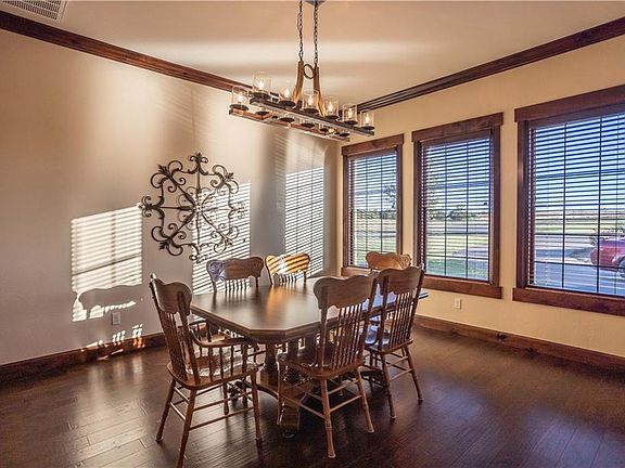 Breathtaking custom home situated on approximately 4.43 acres of natural beauty just south of Weatherford. This spectacular home boasts a quiet location at the end of the street, providing abundant privacy among the trees and small creek lining the backyard. Inside marvel at the vaulted ceiling of the great room and the chef's dream kitchen, complete with a gas range, large island, and walk-in pantry. Cozy up by the gas log fireplace in the living room or relax outside under the covered patio with an additional gas log fireplace. Enjoy a split floor plan with large bedrooms and walk-in closets, including a master suite with tray ceiling and crown molding leading to a spacious master bath with a large walk-in shower. Home also features a 3-car garage, sprinkler system, water softener, and rural water. The basement has an additional 468 sqft of extra space, perfect for a home gym or game room. Come experience the luxury and privacy of Whispering Meadows – your dream home awaits.