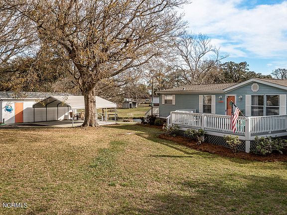 Located in the highly desirable community of Tanglewood, this meticulously maintained home offers breathtaking views of the intracoastal waterway and the pond it sits on. This 3 bed 2 bath home is a split floor plan with many updates. All rooms feature ample closet space and home receives an abundance of natural light. Screened in back porch is the perfect place to sit and enjoy your views year round. Deck extends around the side of the home as well with easy kitchen access for potential grilling and outdoor dining. Property features a second lot that has a carport and storage shed as well as a swing overlooking the pond.