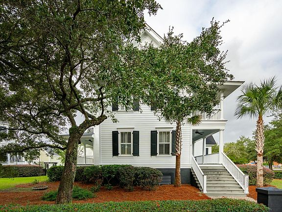 Welcome to timeless Charleston elegance across from Smythe Park. This custom-built home by New Traditions showcases classic Lowcountry architecture with Charleston-green porches, copper gutters, and a bluestone entry framed by moss-draped live oaks. Recent updates include a new roof and freshly painted exterior. Inside, heart-of-pine floors and natural stone counters complement an updated gourmet kitchen with high-end appliances, a Wolf 6-burner range, and Miele built-ins. The open layout offers expansive dining and entertaining spaces, and each bedroom includes its own en suite bath for privacy and comfort.Enjoy park and lake views from multiple porches and gathering areas. A fully equipped apartment above the garage provides additional flexibility for guests. With its refined craftsmanship, walkable location, and enduring curb appeal, this home embodies the best of Daniel Island living classic, convenient, and beautifully maintained.